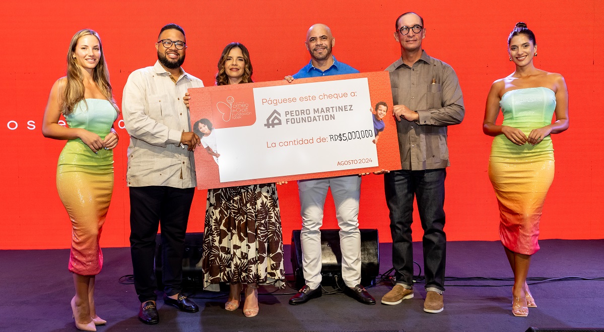 Durante la ceremonia de cierre, la señora Glenda Borbón, hizo entrega de un cheque por valor de 5 millones de pesos, a Jhonan Meran, director general de la Fundación Pedro Martínez, entidad beneficiaria de este 1er. Torneo de Golf iQtek.