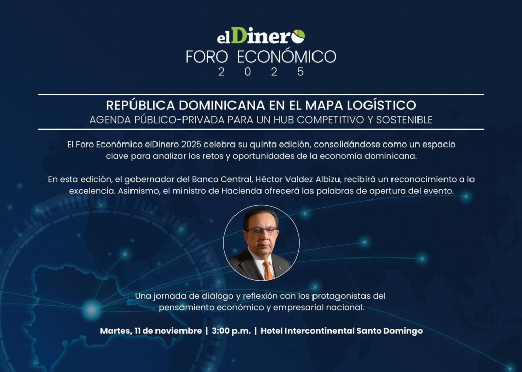 El Foro Económico elDinero, organizado por el periódico elDinero ha consolidado su papel como una de las plataformas más influyentes de análisis económico del país. En esta quinta edición, el foro se desarrollará bajo el tema “República Dominicana en el mapa logístico: agenda público-privada para un hub competitivo y sostenible.